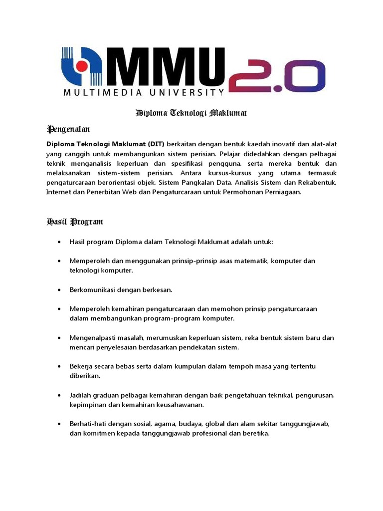 Diploma Teknologi Maklumat Mmu Pdf